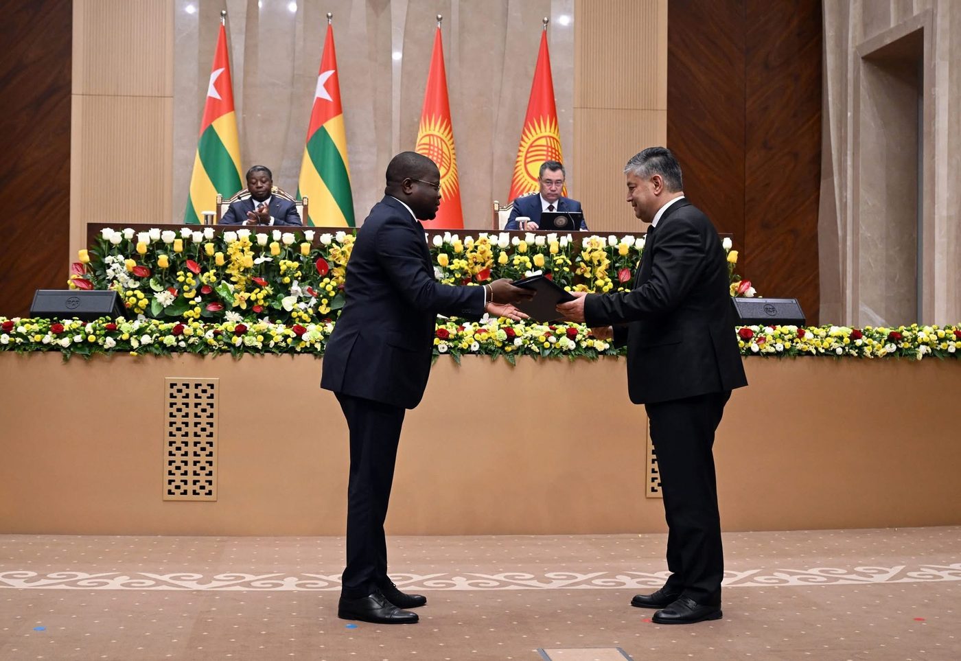 Сярод іх падпісана пагадненне аб супрацоўніцтве ў сферы падтрымкі і ўзаемнай абароны інвестыцый паміж Нацыянальным агенцтвам па інвестыцыях пры Прэзідэнце Кыргызскай Рэспублікі і адпаведнымі дзяржаўнымі органамі Рэспублікі Тога.